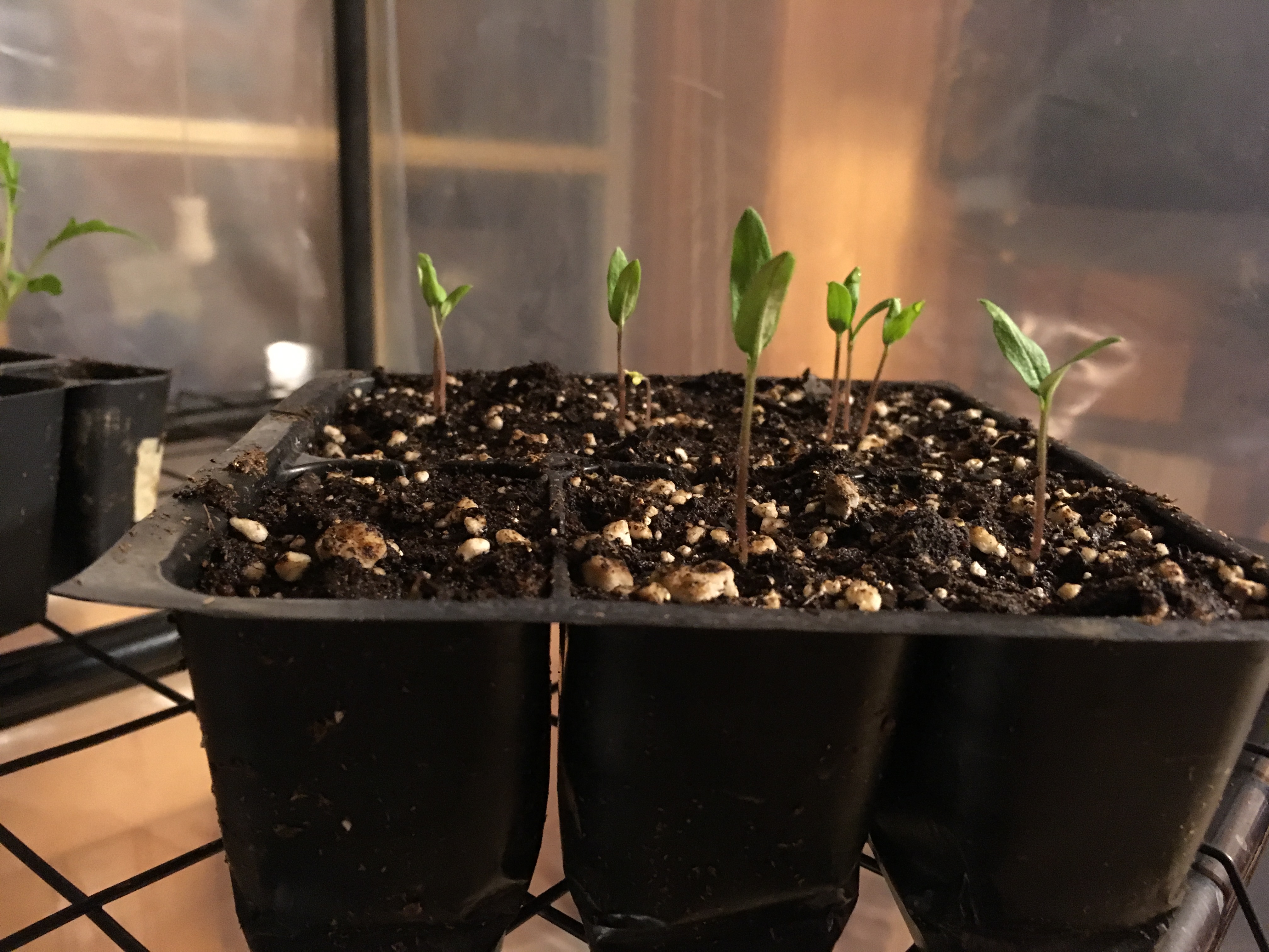 Temperature, moisture, and lighting are important factors in seedling success. Many seeds germinate best between 65 and 85 F. Place trays on an electric germination mat for added warmth. It is critical to keep the media moist during germination. If possible, create a humid environment around the trays by placing in a germination tent or covering them with a clear plastic tray. Remove any plastic cover as soon as the first seed germinate. Seedlings should be kept between 60 to 70 F during the day and 55 and 60 F at night.